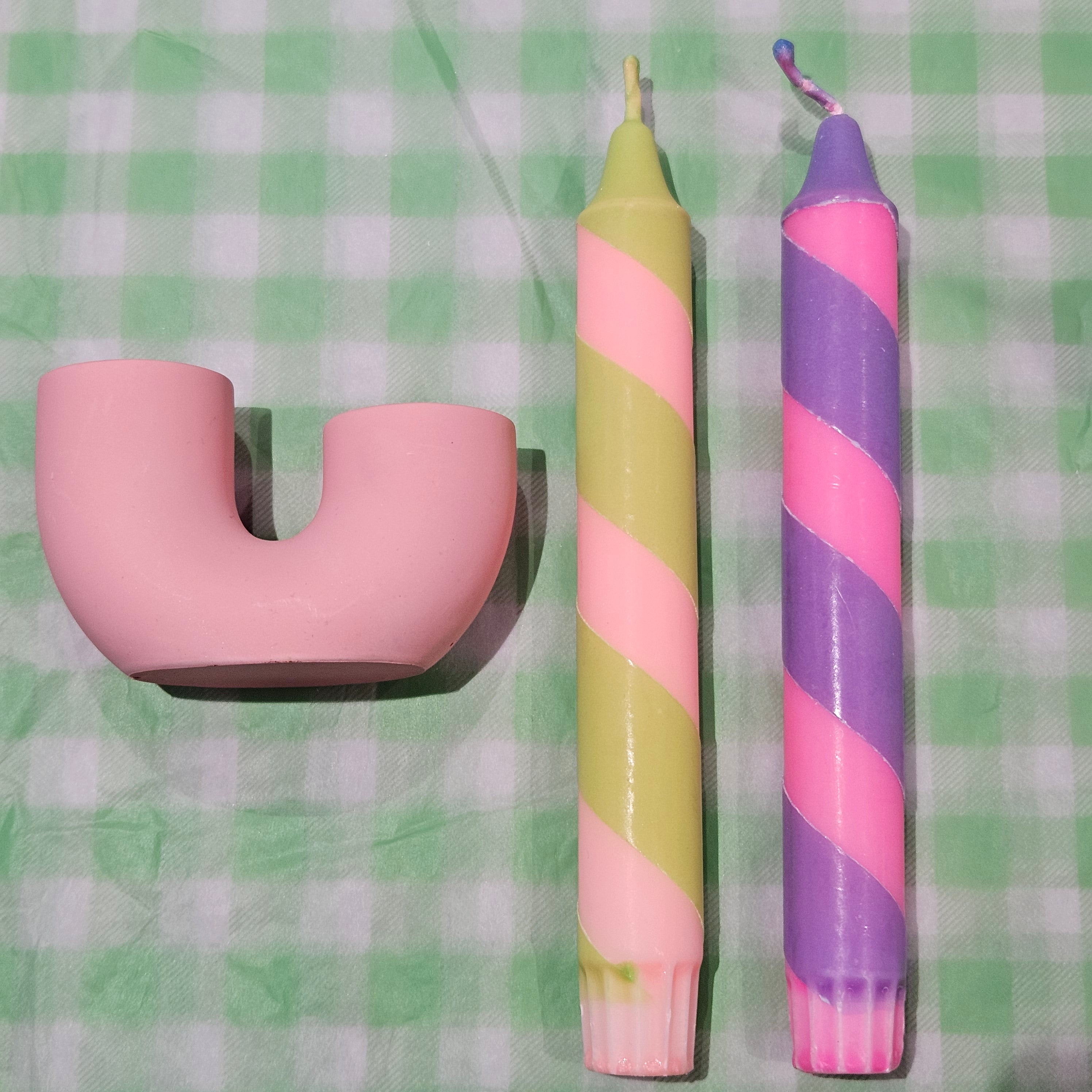 U Candle Holder * Pink / Candles