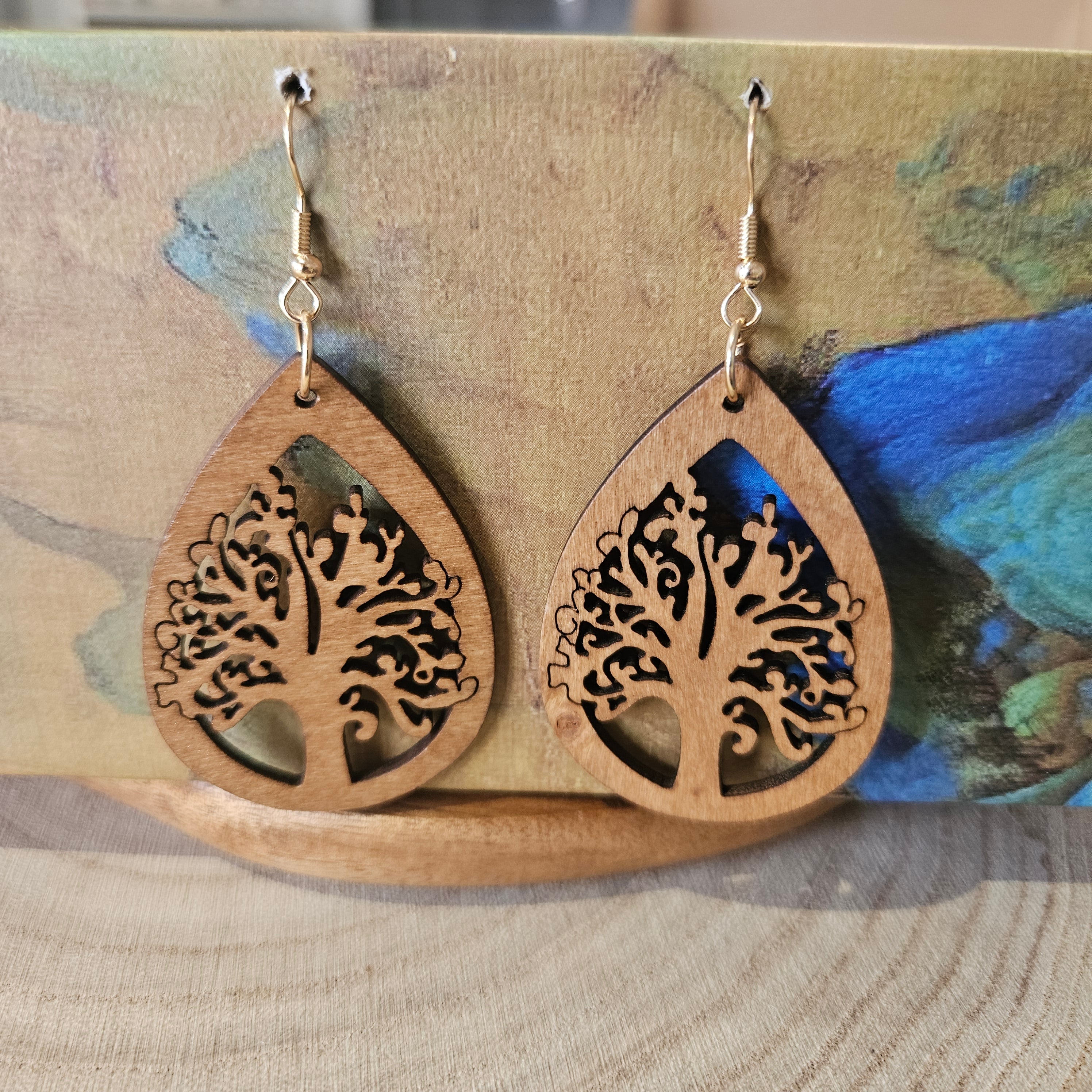 Wooden Drop Earrings - mountain style