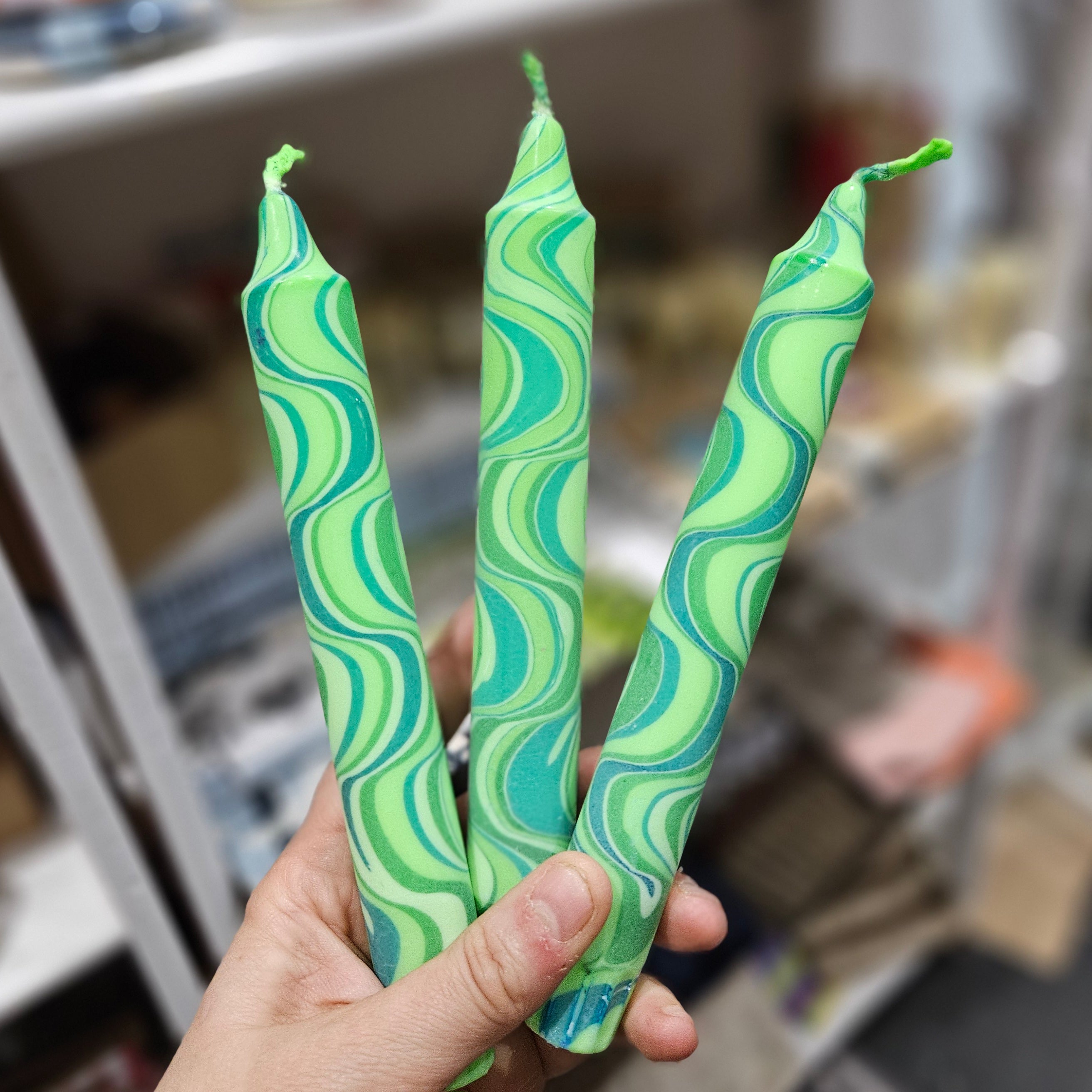 Green Marble Dinner Candles * Handmade