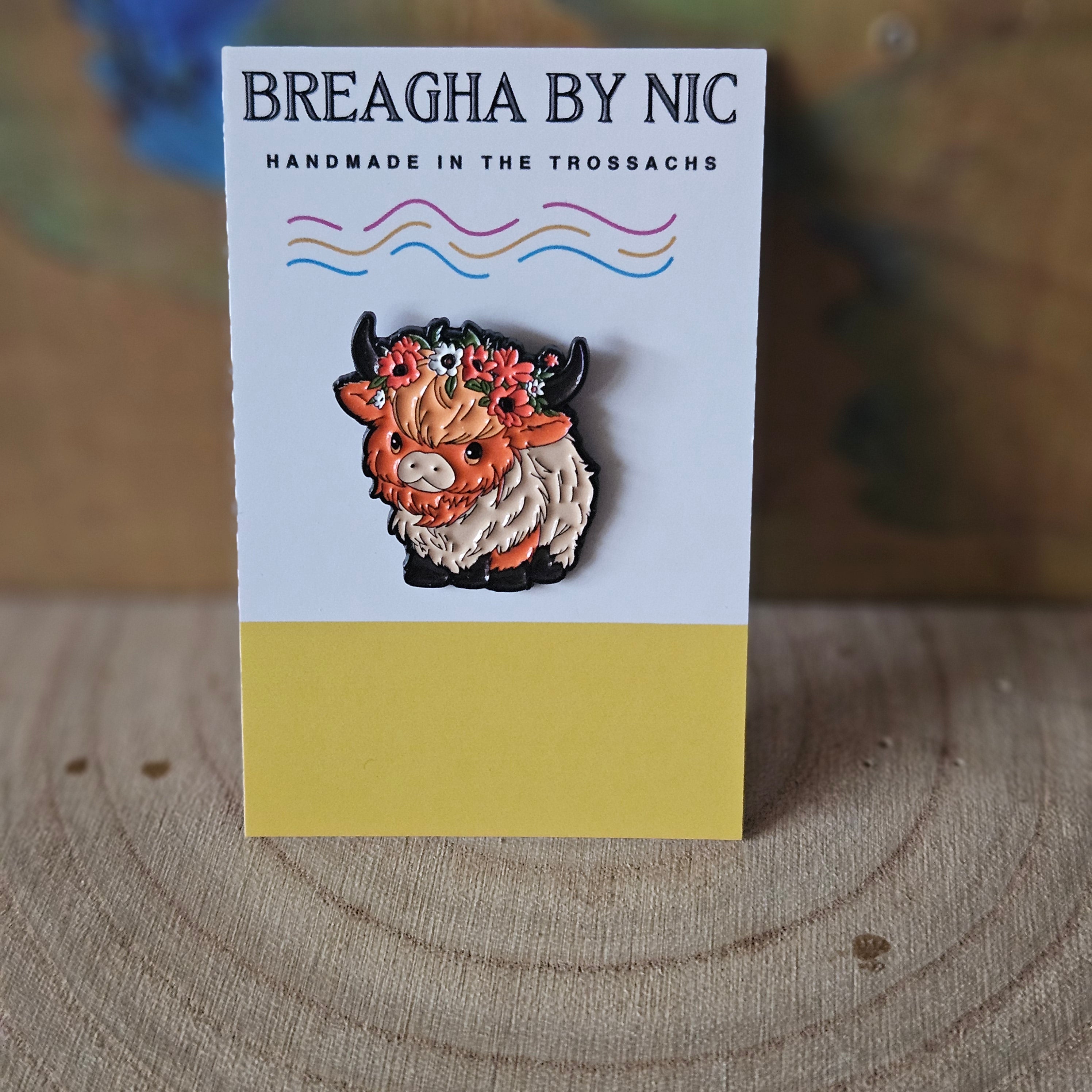 Highland Cow Floral * Enamel Metal Pin