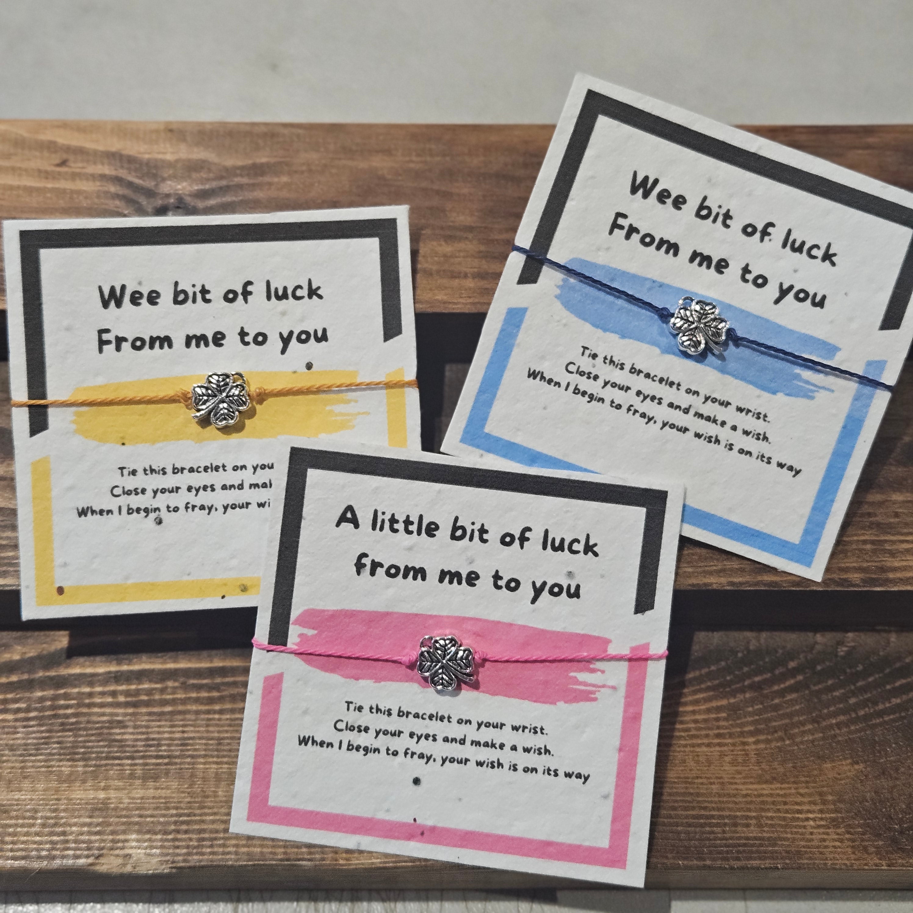 Make - a - Wish bracelet - mounted on wildseed infused card stock. Wax cord slip know bracelet - one...