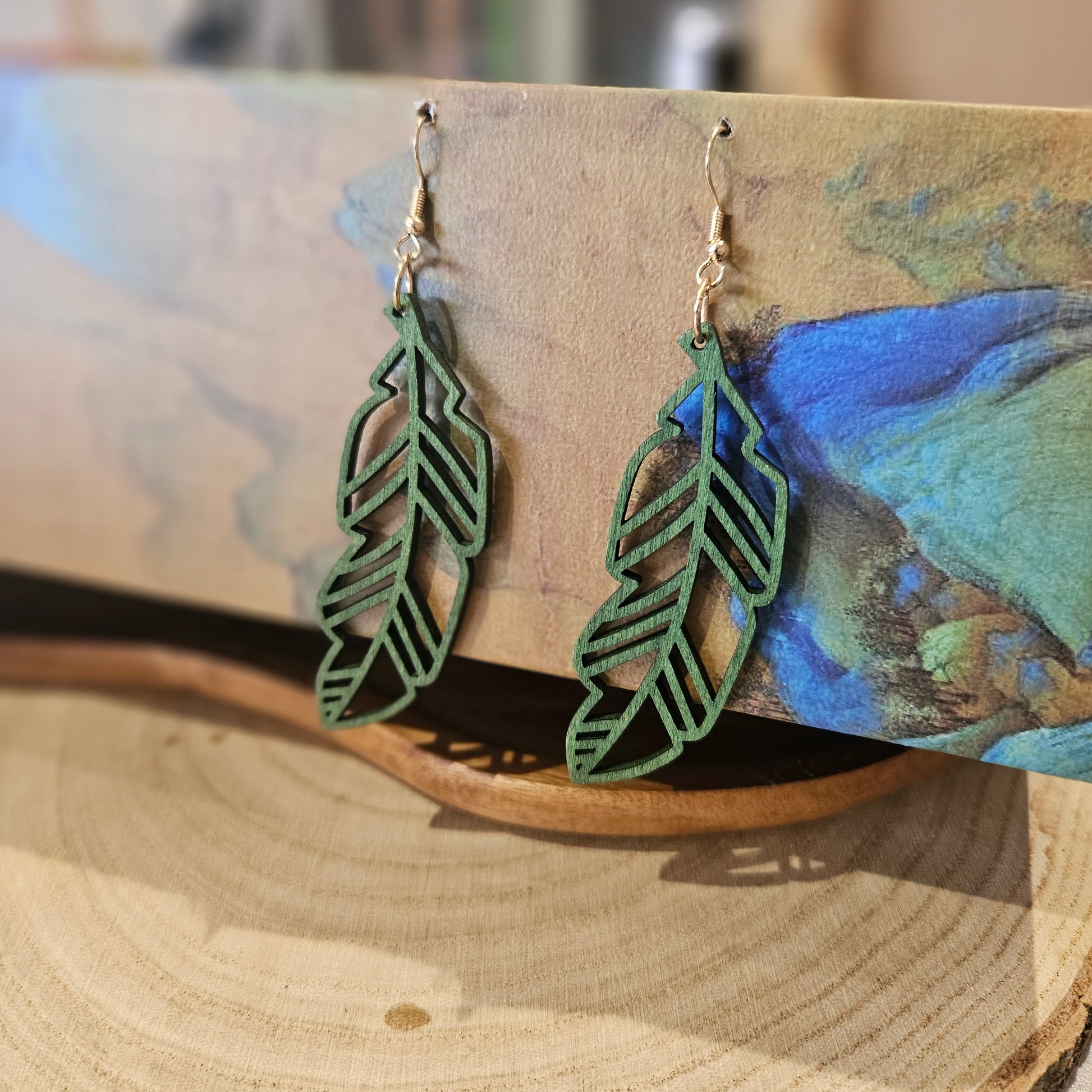 Wooden Leaf Shaped Earrings Green